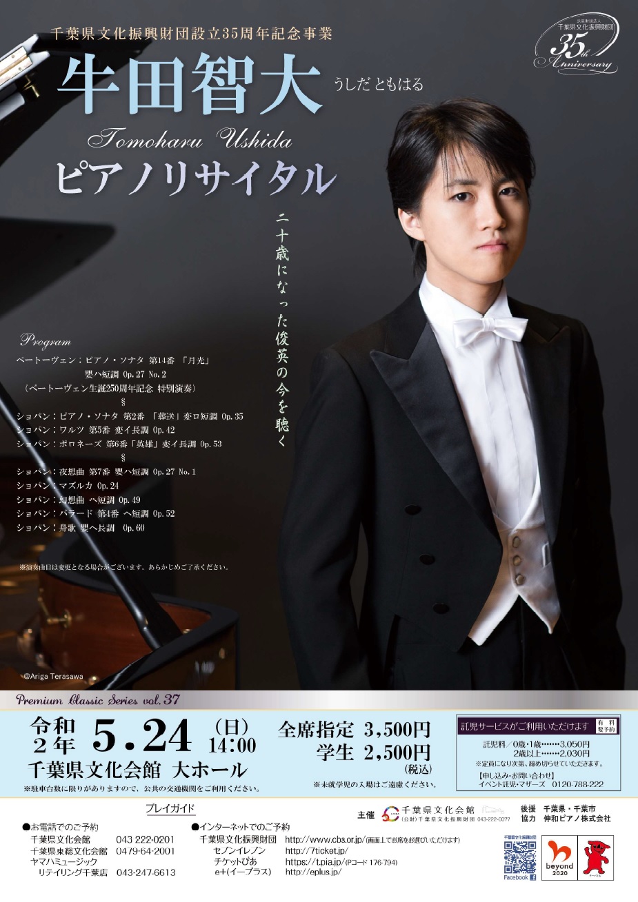【延期】牛田智大ピアノリサイタル@千葉県文化会館<5/24(日曜)>