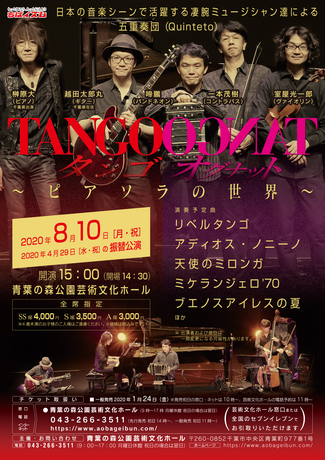TANGO OGNAT(4月29日振替公演)@青葉の森公園芸術文化ホール<8/10(月曜・祝)>