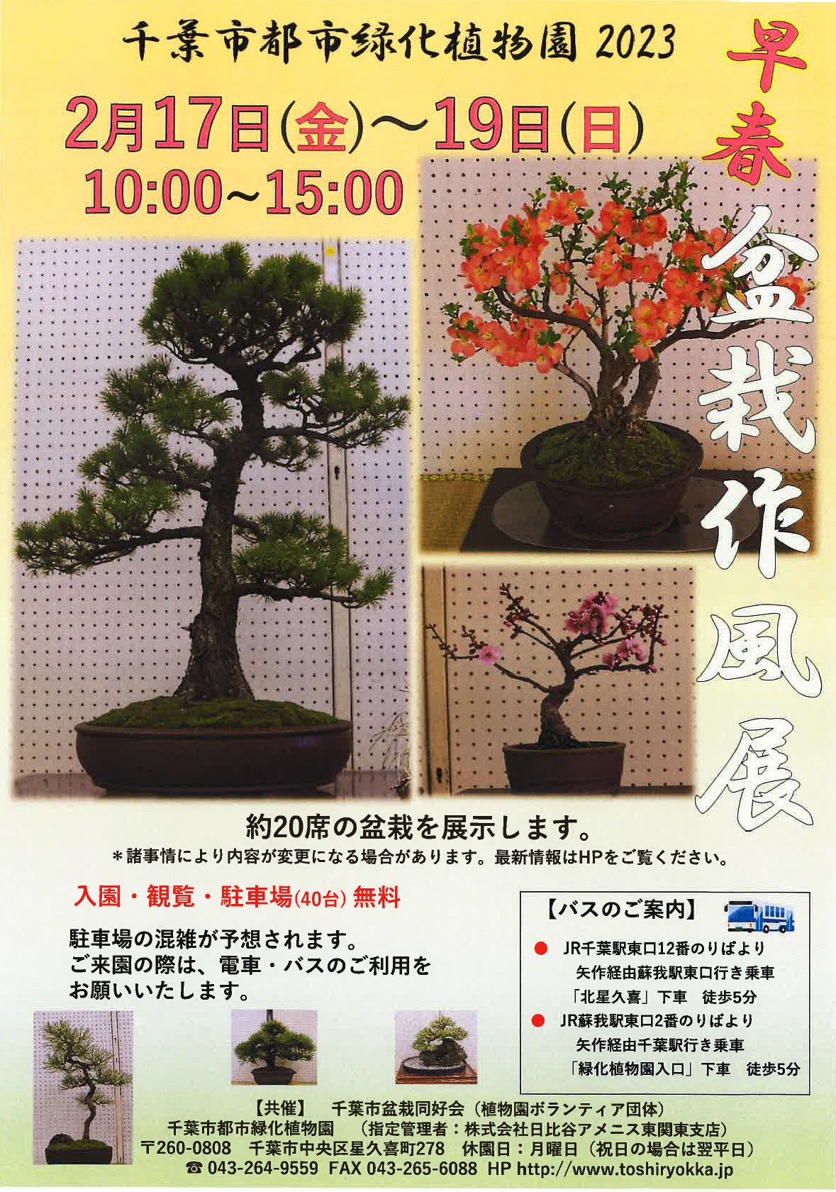 「早春の盆栽作風展」@千葉市都市緑化植物園<2/17(金曜)・18(土曜)・19(日曜)>
