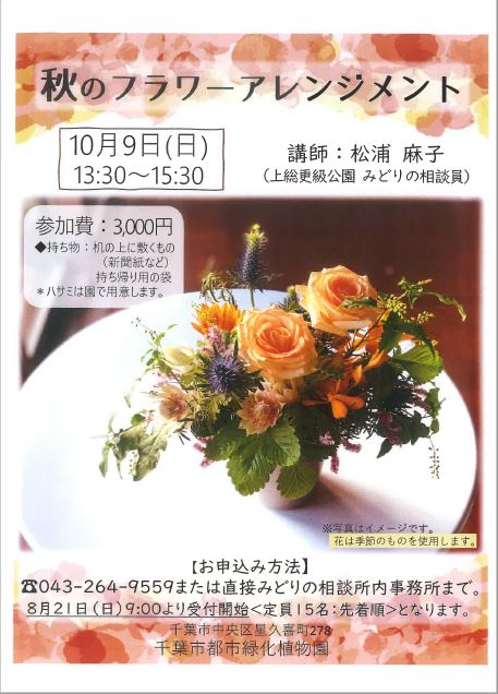 秋のフラワーアレンジメント@千葉市都市緑化植物園<10/9(日曜)>
