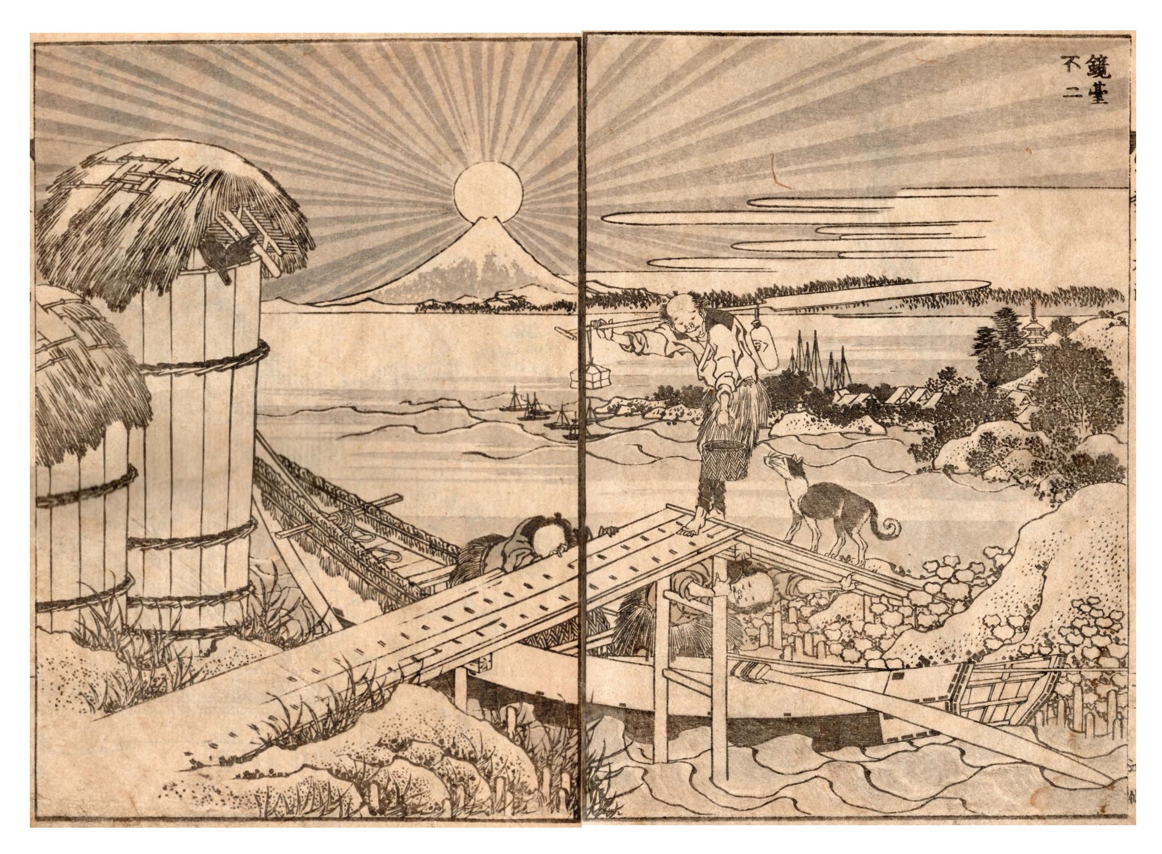 1つは、1834(天保5)年に刊行された『富嶽百景』初編の「鏡臺不二」です(図①)。