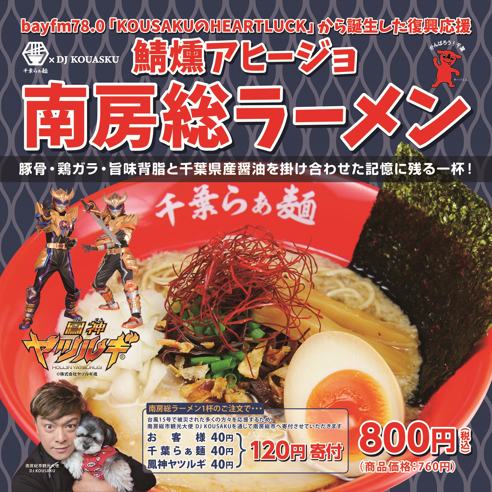千葉を守るご当地ヒーロー!『鳳神ヤツルギ』が復興応援の「南房総ラーメン」に賛同してくれました!
