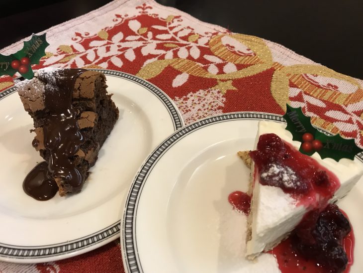 クリスマスの白いレアーチーズケーキとチョコレートケーキ(終了いたしました)