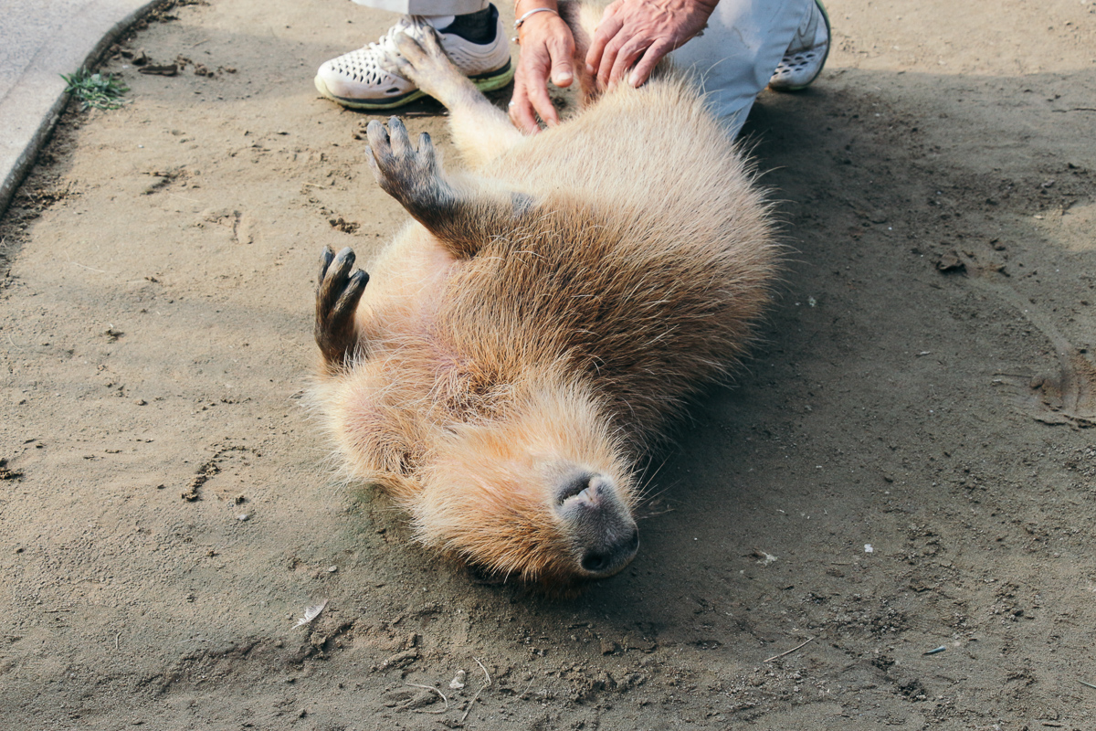 人とじゃれ合うのが大好きなカピバラのアサちゃん。