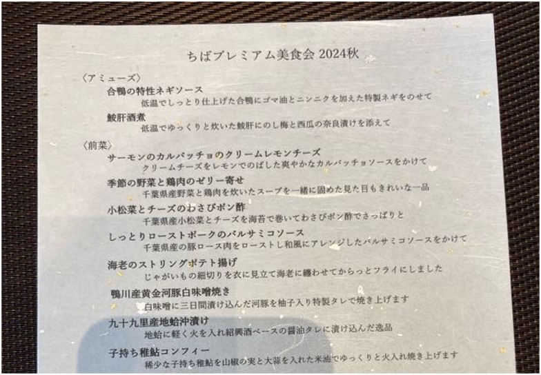 『ちばプレミアム美食会』当日の様子 投稿者:千葉市観光協会2024年11月21日 ちばプレミアム美食会 2024秋 ~ちばの美食コラボ スペシャルコースディナー~ 【当日(2024年11月19日(火曜日))の様子】 会場の様子 料理・食事の様子 ショーの様子 調理・キッチンの様子 スピーチ・スタッフ 会場入口周辺の様子 準備・取材の様子 ツイート 前の記事へ 次の記事へ