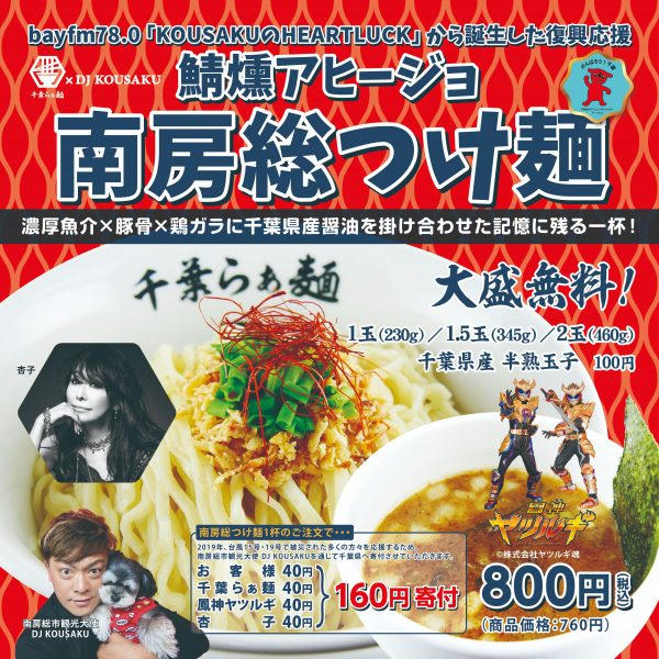 bayfm78.0「KOUSAKUのHEARTLUCK」から誕生した復興応援の「南房総つけ麺」。