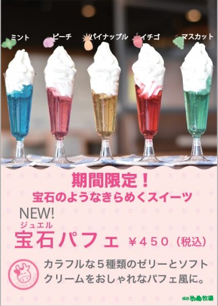 GW中、全て営業 /「宝石(ジュエル)パフェ450円。カラフルゼリーとソフトクリームでおしゃれなパフェ風に。」