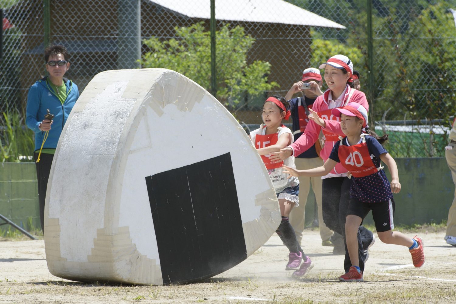 こちらは「アートいちはら2018春」の作品「おにぎりのための運動会」の一場面(photo /野口浩史)。旧里見小学校(市原市徳氏541-1)で開催され、多くの参加者で賑わいました。