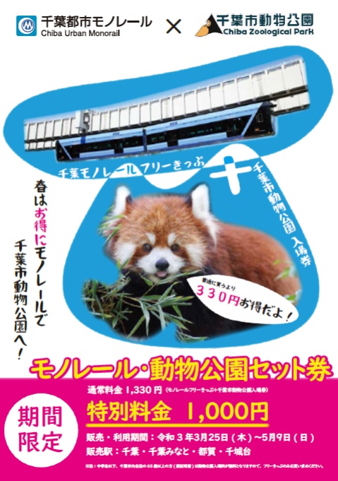 「千葉モノレール✖千葉市動物公園」お得な割引きっぷを発売中!!3/27更新
