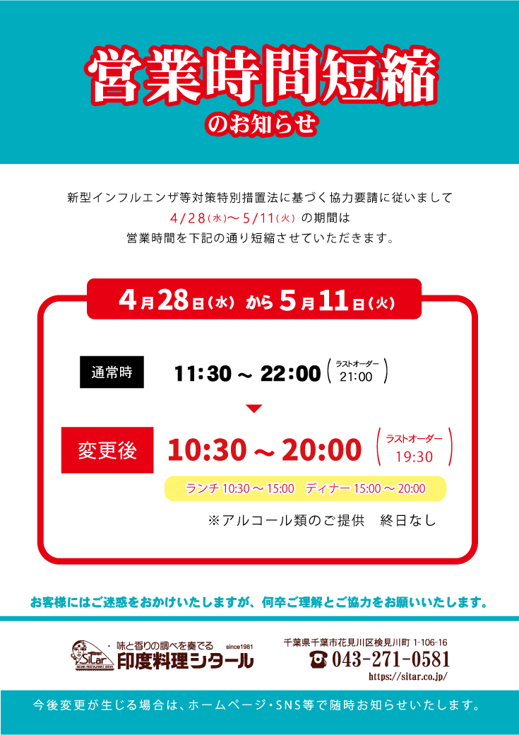4月28日からの営業時間のお知らせNEW!!
