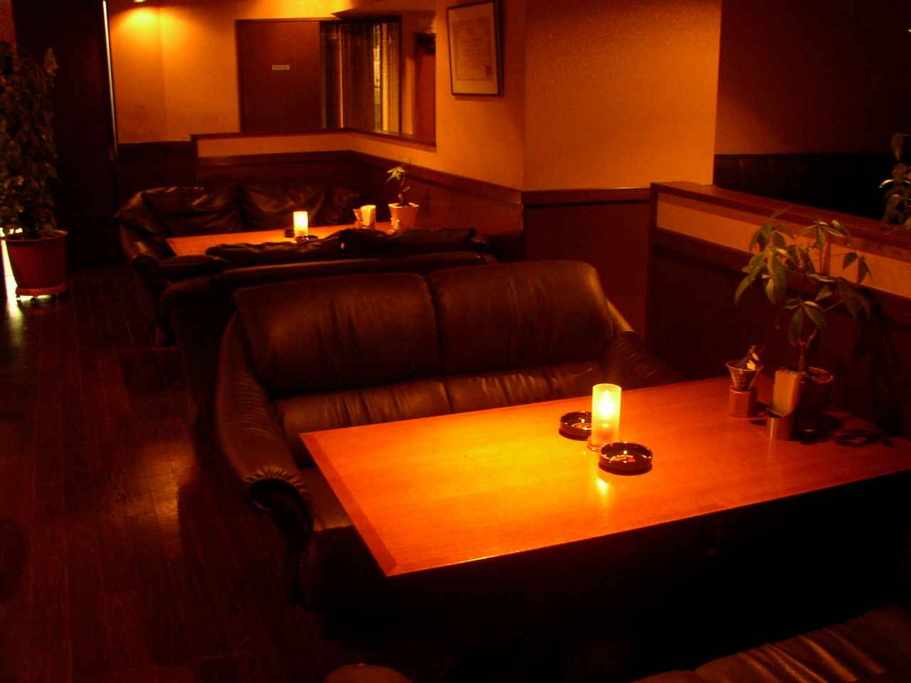 テーブル席は革張りのソファで時間を忘れてゆったりとくつろげる。