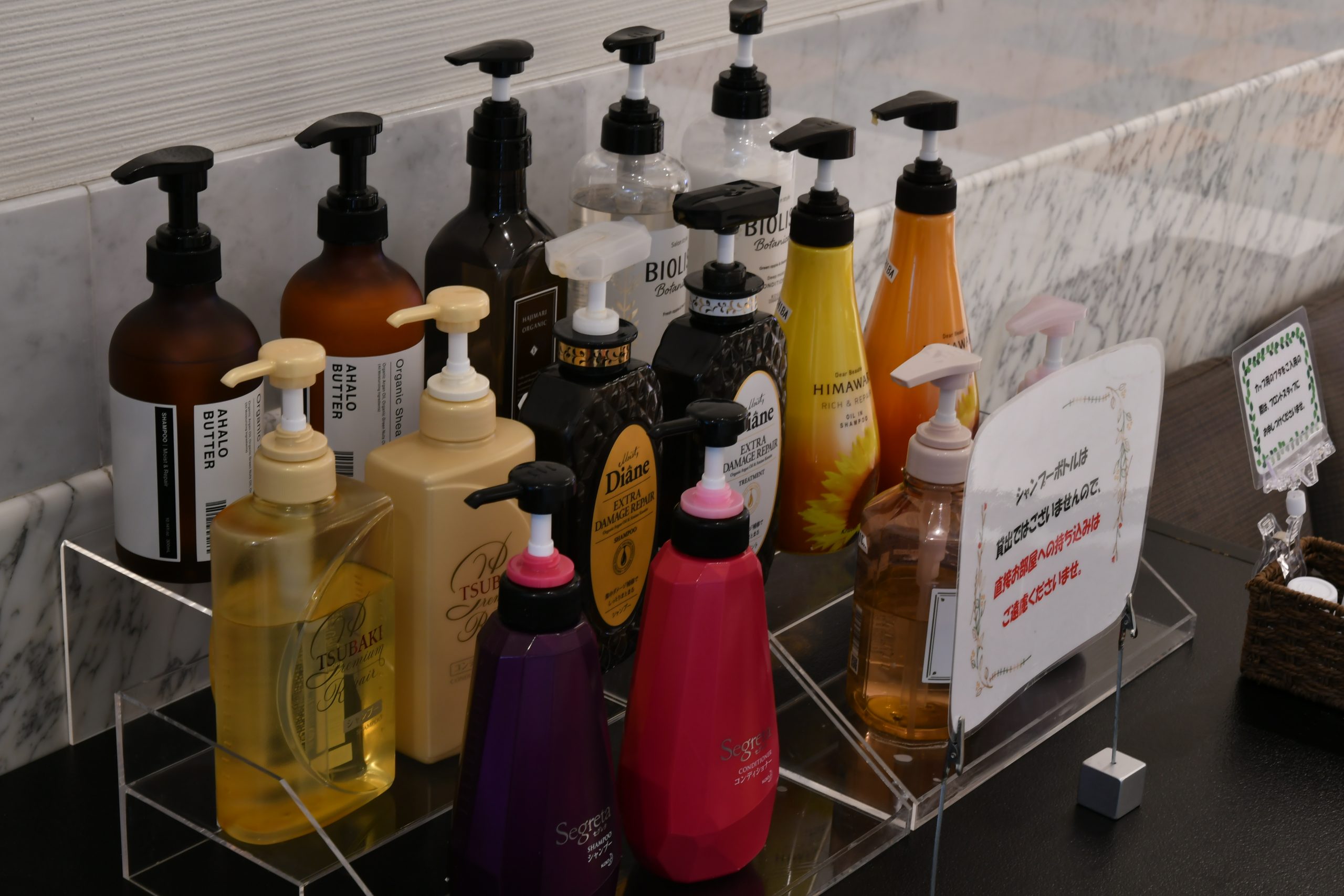 1Fロビーにはシャンプーバーを設置。その日の気分に合わせてご自由にお好きなシャンプーをお選びいただくことができます。