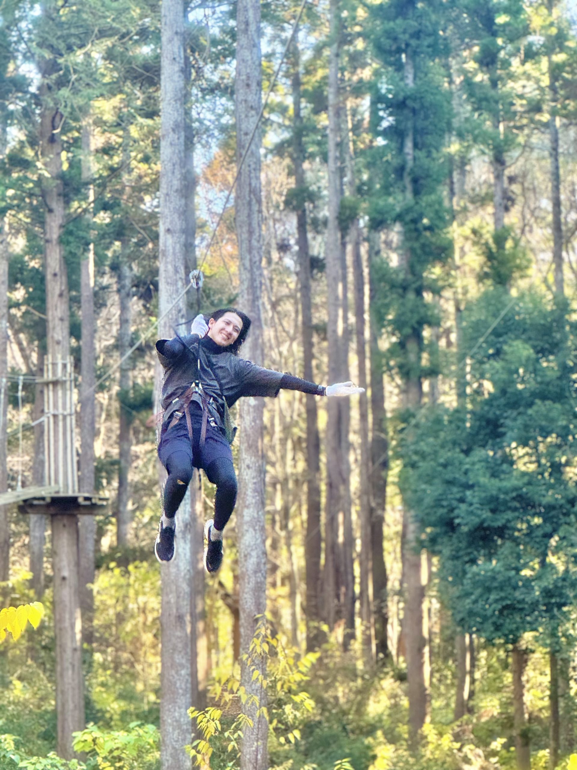 国内の森林をそのまま活用したアクティビティは、高さ最大約10mの所にあり、木々の間をすり抜けながら滑空する「ジップスライド」は大人向けのアドベンチャーコースで最長120mも!