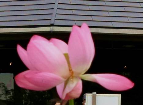 の6、蓮華亭に綺麗な花色の花びら 広がりを見せる、大賀ハス