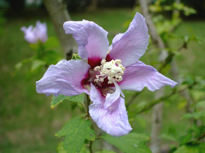 | 一言コメント | 朝のうちは薄雲から陽光の陽射し、蒸し暑いなかで 有吉公園へ。 有吉公園の散歩道はジョキング者の楽しい道、散策散歩道には鮮やかな花色で咲きはじめる、「ムクゲ(アオイ科)」の綺麗な花びら。 |